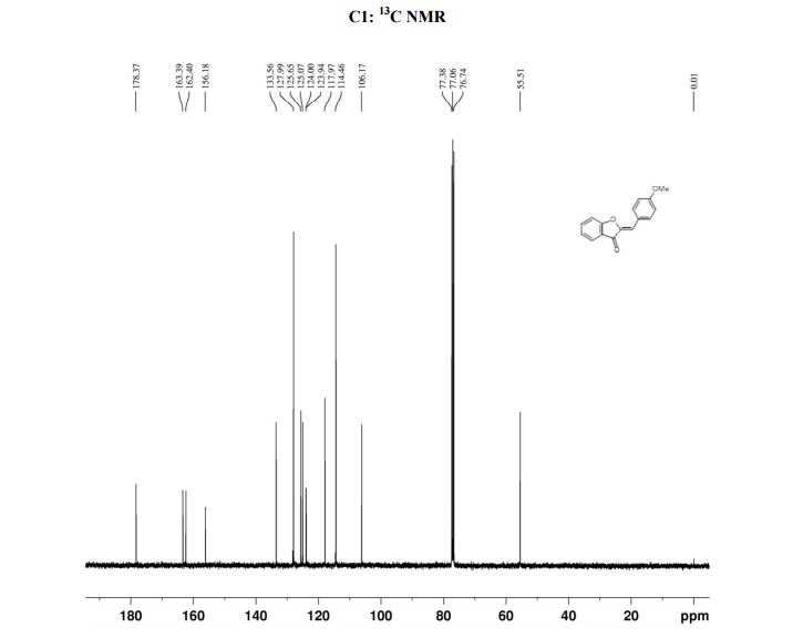 (Z)-2-(4-Methoxybenzylidene)benzofuran-3(2H)-one (C1): Yellow solid, 151 mg, 60% yield, m.p. 160-162 °C;