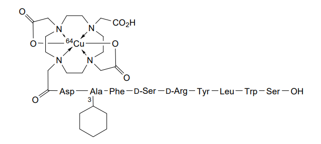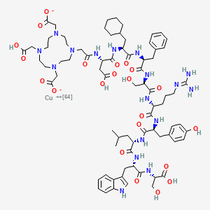 Cuprate(3-)-64Cu, [N-[2-[4,10-bis[(carboxy-κO)methyl]-7-(carboxymethyl)-1,4,7,10-tetrazacyclododec-1-yl-κN1,κN4,κN7,κN10 ]acetyl]-L-α-aspartyl-3-cyclohexyl-L-alanyl-L-phenylalanyl-D-seryl-D-arginyl-L-tyrosyl-L-leucyl-L-tryptophanyl-L-serinato(5-)]-, hydrogen (1:3)