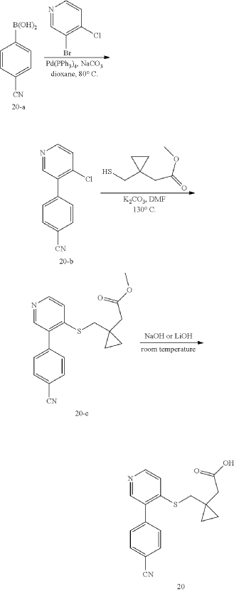 Step 3: Synthesis of 2-(1-(((3-(4-cyanophenyl)pyridin-4-yl)thio)methyl) cyclopropyl)acetic acid (20)