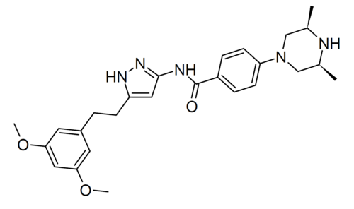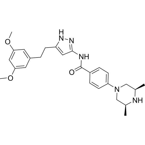 N-{5-[2-(3,5-dimethoxyphenyl)ethyl]-1H-pyrazol-3-yl}-4-[(3R,5S)-3,5-dimethylpiperazin-1-yl]benzamide