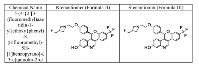 - (5r)-5-(4-(2-(3-(fluoromethyl)azetidin-1-yl)ethoxy)phenyl)-8-(trifluoromethyl)-5h-(1)benzopyrano(4,3-c)quinolin-2-ol