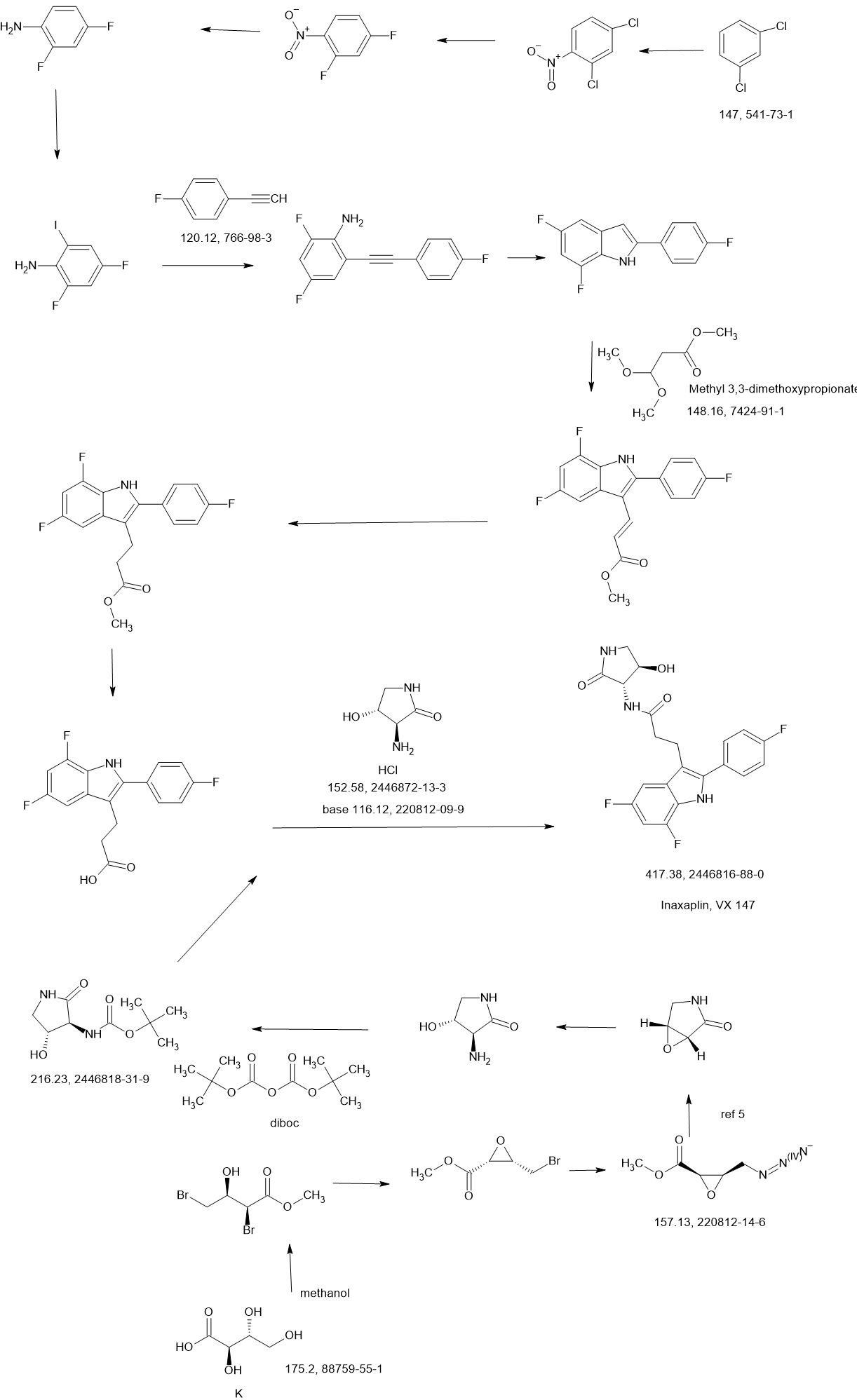 Synthesis of 3-[5,7-difluoro-2-(4-fluorophenyl)-1H-indol-3-yl]-N-[(3S,4R)-4-hydroxy-2-oxo-pyrrolidin-3-yl]propanamide (2)