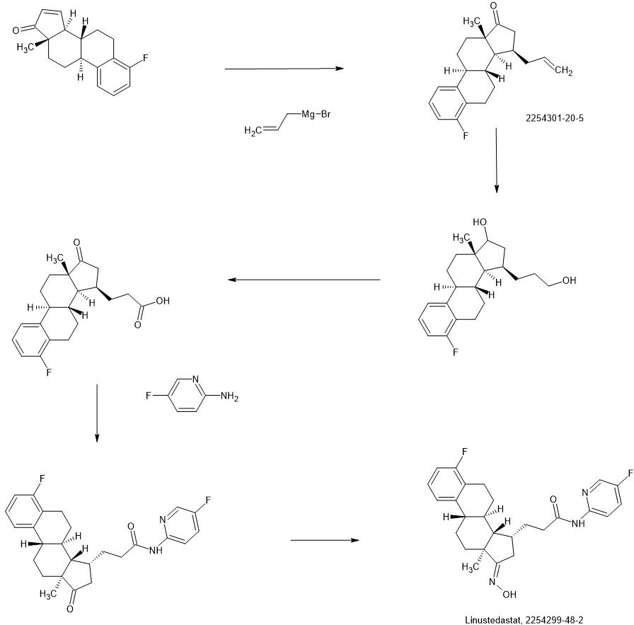 Linustedastat (developmental code names FOR-6219 and OG-6219) is a 17β-hydroxysteroid dehydrogenase 1 (17β-HSD1; HSD17B1) inhibitor which is under development for the treatment of endometriosis.[1][2][3][4][5] It is a steroidal compound derived from estrone and works by preventing the formation of the more potent estrogen estradiol from the minimally active precursor estrone.[1][2][5] This in turn results in antiestrogenic effects that may be useful in the treatment of estrogen-dependent conditions.[1][2][5] As of November 2023, the drug is in phase 2 clinical trials for endometriosis.[1][2] It is also under preclinical investigation for treatment of breast cancer and endometrial cancer.[5]