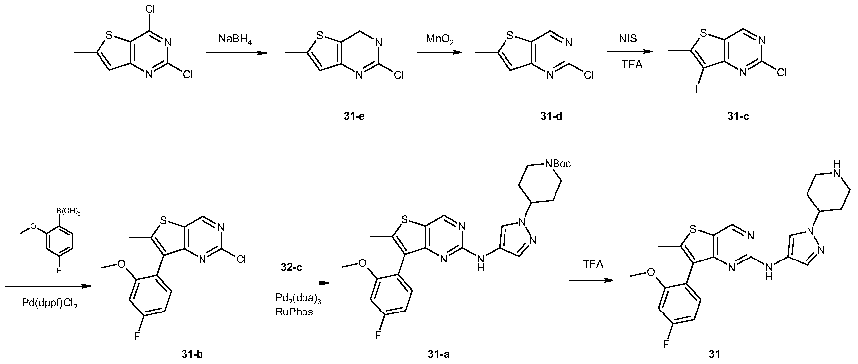 [0488]N-[7-(4-fluoro-2-methoxyphenyl)-6-methylthieno[3,2-d]pyrimidin-2-yl]-1-(piperidin-4-yl)-1H-pyrazol-4-amine (compound 31)
