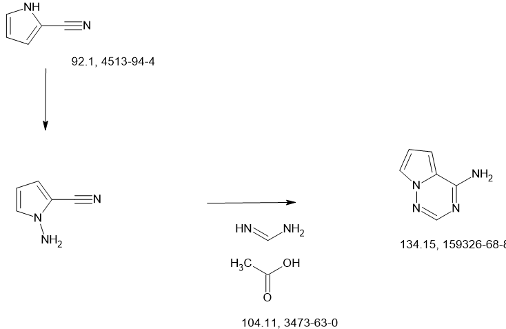 | Example 1. (3aR, 4R, 6R, 6aR)-4-(4-aminopyrrole[2,1-f][1,2,4]triazin-7-yl)-6-(hydroxymethyl- Synthesis of 2,2-dimethyltetrahydrofuran[3,4-d][1,3]dioxolyl-4-carbonitrile (compound 5) |
