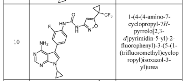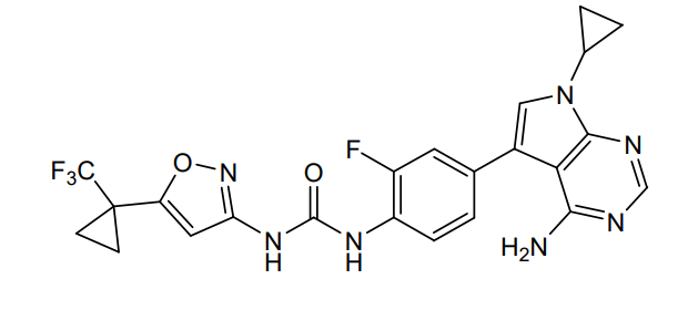 UREA, N-(4-(4-AMINO-7-CYCLOPROPYL-7H-PYRROLO(2,3-D)PYRIMIDIN-5-YL)-2-FLUOROPHENYL)-N’-(5-(1-(TRIFLUOROMETHYL)CYCLOPROPYL)-3-ISOXAZOLYL)-