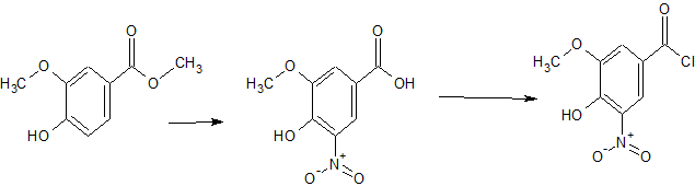 Preparation of 4-hydroxy-5-methoxy-3-nitrobenzoyl chloride