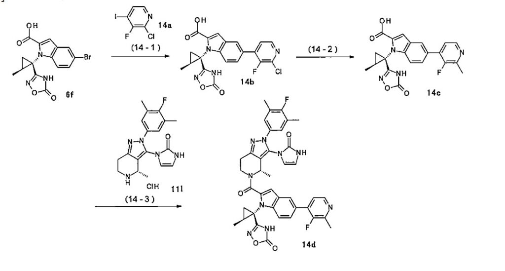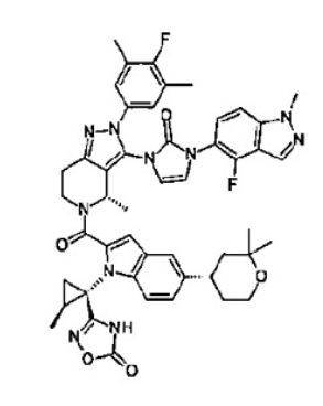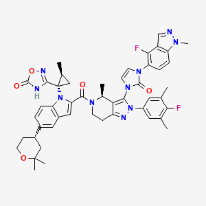 - 3-[(1S,2S)-1-[5-[(4S)-2,2-dimethyloxan-4-yl]-2-[(4S)-2-(4-fluoro-3,5-dimethylphenyl)-3-[3-(4-fluoro-1-methylindazol-5-yl)-2-oxoimidazol-1-yl]-4-methyl-6,7-dihydro-4H-pyrazolo[4,3-c]pyridine-5-carbonyl]indol-1-yl]-2-methylcyclopropyl]-4H-1,2,4-oxadiazol-5-one