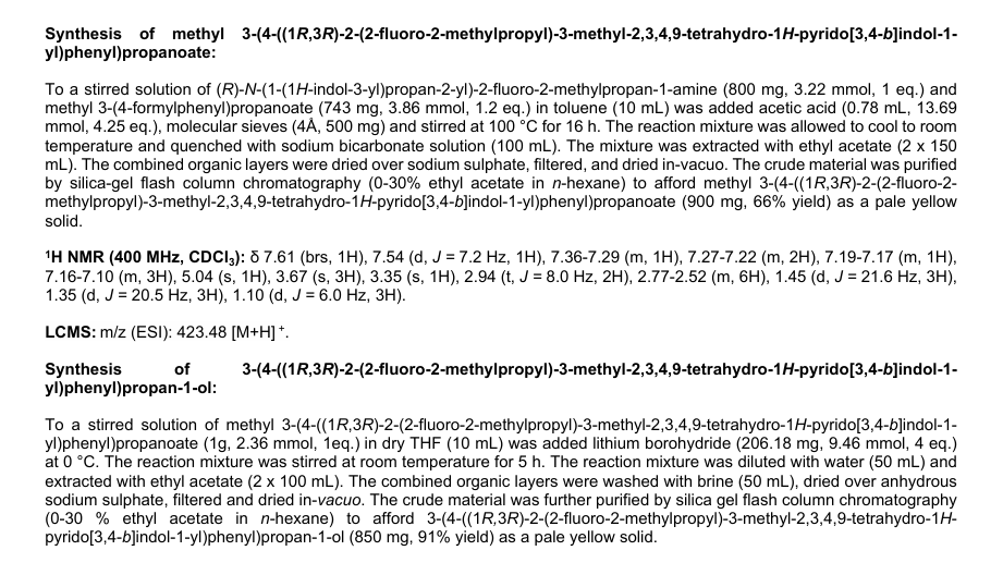 - (1R,3R)-2-(2-fluoro-2-methylpropyl)-3-methyl-1-[4-(1-propylazetidin-3-yl)oxyphenyl]-1,3,4,9-tetrahydropyrido[3,4-b]indole