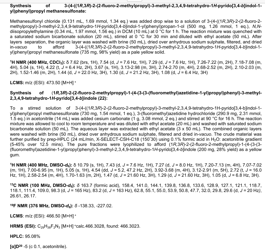 - (1R,3R)-2-(2-fluoro-2-methylpropyl)-3-methyl-1-{4-[(1-propylazetidin-3- yl)oxy]phenyl}-2,3,4,9-tetrahydro-1H-pyrido[3,4-b]indole