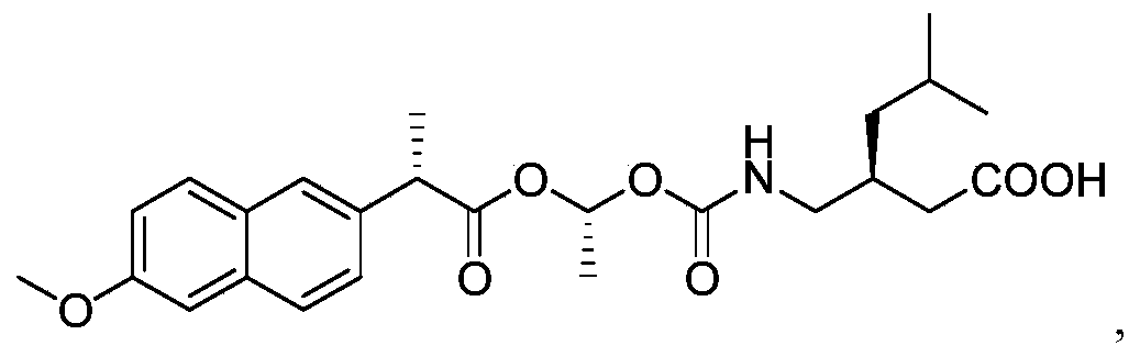 Example 2: Alternative synthetic route of (S) -3- ( ( ( (R) -1- ( (S) -2- (6-methoxynaphthalen-2-yl) propanoyloxy) ethoxy) carbonyl-amino) methyl) -5-methylhexanoic acid