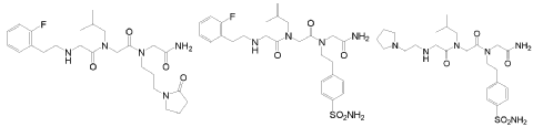 In another embodiment, optionally in combination with one or more features of the various embodiments described above or below throughout all the description, the compound of formula (I) is selected from the group consisting of G79 ([N-(2-(2′-fluorophenyl)ethyl)- glycyl]-[N-(2-methylpropyl)-glycyl]-N-[3-(2′-oxopyrrolidinyl)-propyl]glycinamide, BN201 , Chemical Formula: C25H38FN5O4; MW 491.5987), G-80 ([N-(2-(2′-fluorophenyl)ethyl)- glycyl]-[N-(2-methyl-propyl)glycyl]-N-[2-(4′-sulfamoyl-phenyl)ethyl]glycinamide, BN 119, Chemical Formula: C26H36FN5O5S; MW 549.658) and G81 ([N-(2-(1 -pyrrolidinyl)ethyl)- glycyl]-[N-(2-methyl-propyl)glycyl]-N-[2-(4′-sulfamoyl-phenyl)ethyl]glycinamide, BN 120, Chemical Formula: C24H4oN6OS; MW 524.6766):