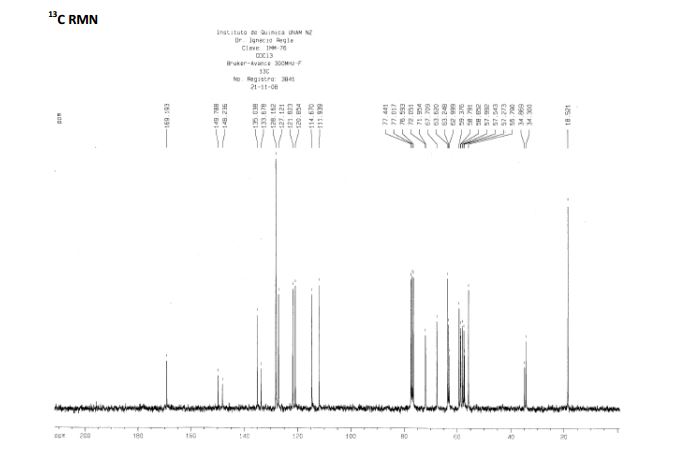 13C NMR (500 MHz, DMSO–d6): 18.23, 39.16, 39.83, 39.50, 39.76, 39.87, 53.18, 53.31, 55.50, 61.13, 61.44, 66.63, 71.96, 112.37, 113.64, 120.74, 120.03, 126.32, 127.62, 134.97, 135.06, 148.36, 149.17, 167.97.