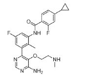 (3) N-(3-(6-Amino-5-(2-(methylamino)ethoxy)pyrimidin-4-yl)-5-fluoro-2- methylphenyl)-4-cyclopropyl-2-fluorobenzamide, INT 10
