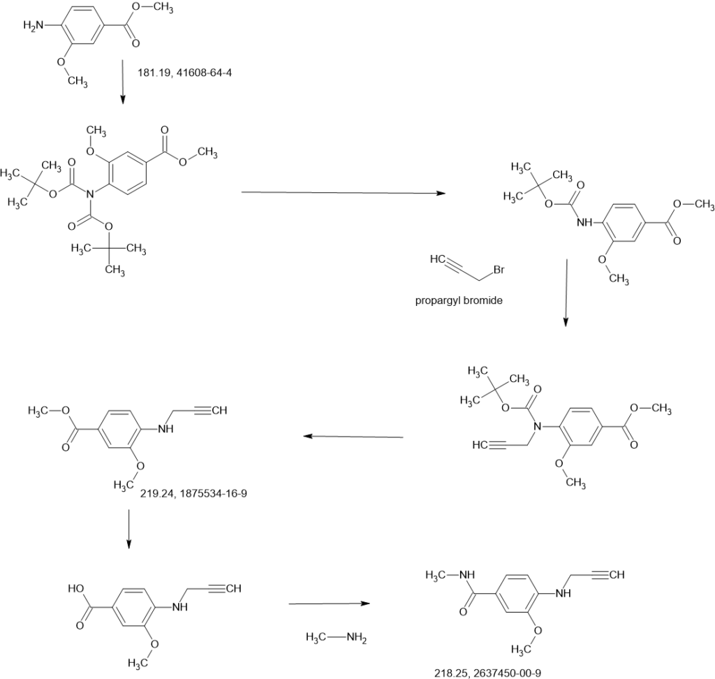 (prop-2-yn-1-yl)aniline 18 (1.80 g, 7.53 mmol, 85.3% yield, HCl salt) as a yellow solid.