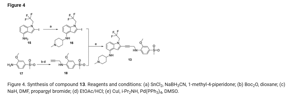2-Iodo-1-(2,2,2-trifluoroethyl)-1H-indol-4-amine 15 was prepared from 4-nitroindole as described in