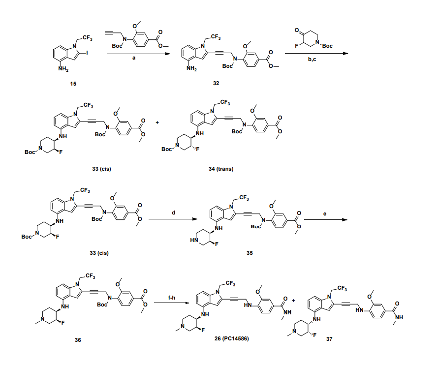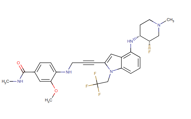 - Benzamide, 4-[[3-[4-[[(3S,4R)-3-fluoro-1-methyl-4-piperidinyl]amino]-1-(2,2,2-trifluoroethyl)-1H-indol-2-yl]-2-propyn-1-yl]amino]-3-methoxy-N-methyl-