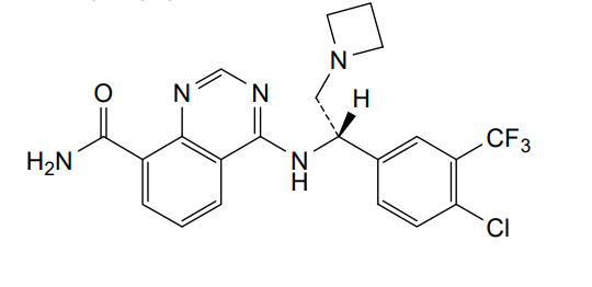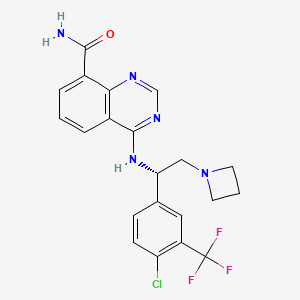4-[[(1S)-2-(azetidin-1-yl)-1-[4-chloro-3-(trifluoromethyl)phenyl]ethyl]amino]quinazoline-8-carboxamide