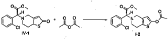 [0042] Following the method described in Example 4, (2R)-methyl 2-(2-chlorophenyl)-2-(2-oxo-7,7a-dihydrothieno[3.2-c]pyridin-5(2H,4H,6H)-yl)-acetate ( IV-1′) (prepared following Examples 1-3) was reacted with acetic anhydride, to prepare (R)-methyl 2-(2-acetoxy-6,7-dihydrothieno[3,2-c]pyridin-5(4H)-yl)-2-(2-chlorophenyl)-acetate ( I-2′), ee = 98.2% (chiral HPLC analysis conditions were the same as those in Example 5), [α] D 23 =-44.00° (c= 1.0, CH 3OH).