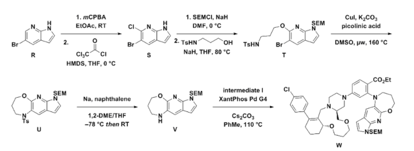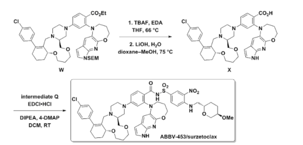 Final Coupling: The fragments are joined through Buchwald–Hartwig and N-sulfonylamide coupling reactions to yield the final surzetoclax molecule.