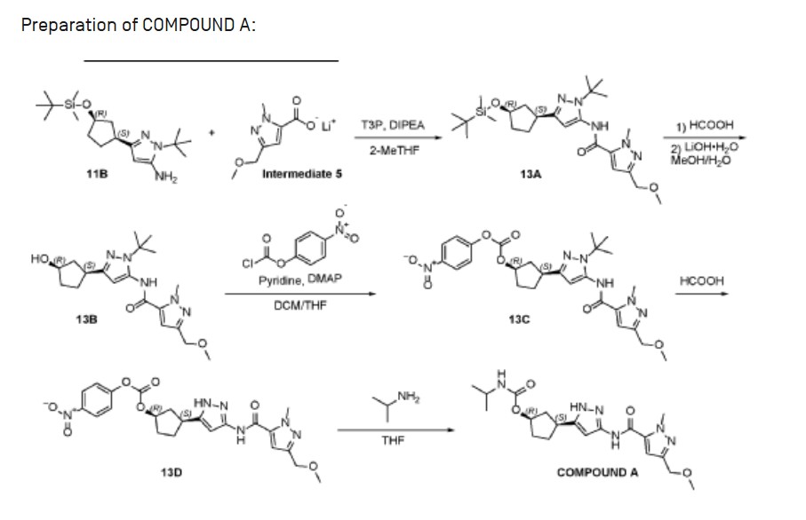 - (1R,3S)-3-{5-[3-(methoxymethyl)-1-methyl-1H-pyrazole-5carboxamido]-1H-pyrazol-3-yl}cyclopentyl (propan-2yl)carbamate