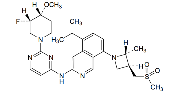 3-Isoquinolinamine, N-[2-[(3S,4R)-3-fluoro-4-methoxy-1-piperidinyl]-4-pyrimidinyl]-5-(1-methylethyl)-8-[(2R,3S)-2-methyl-3- [(methylsulfonyl)methyl]-1-azetidinyl]-